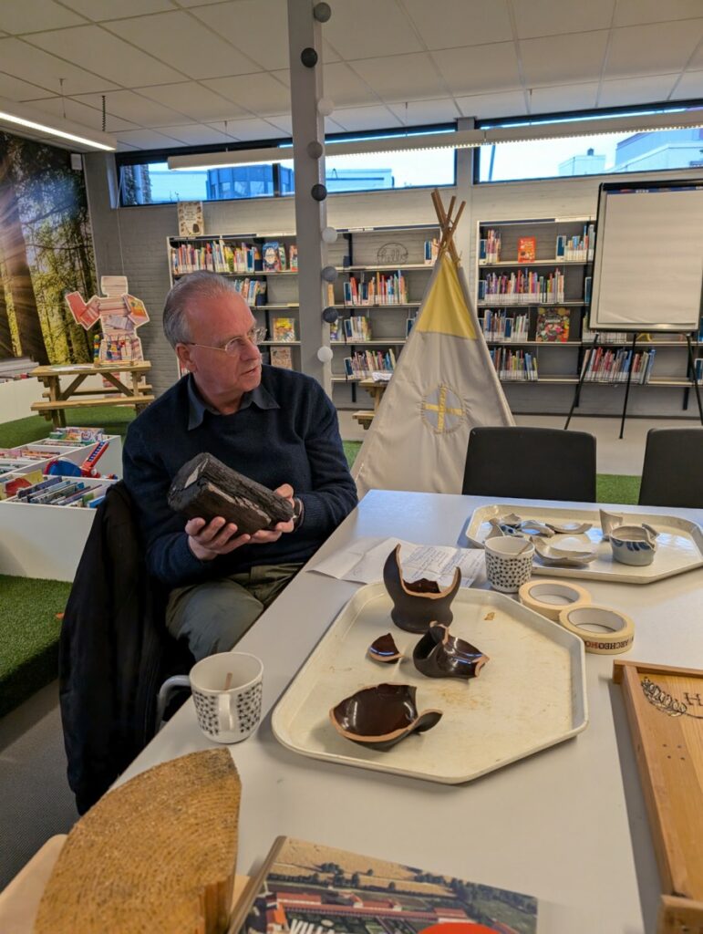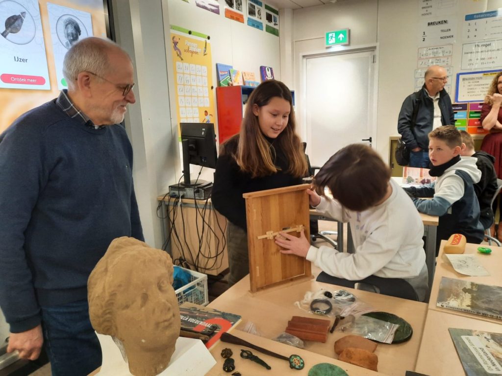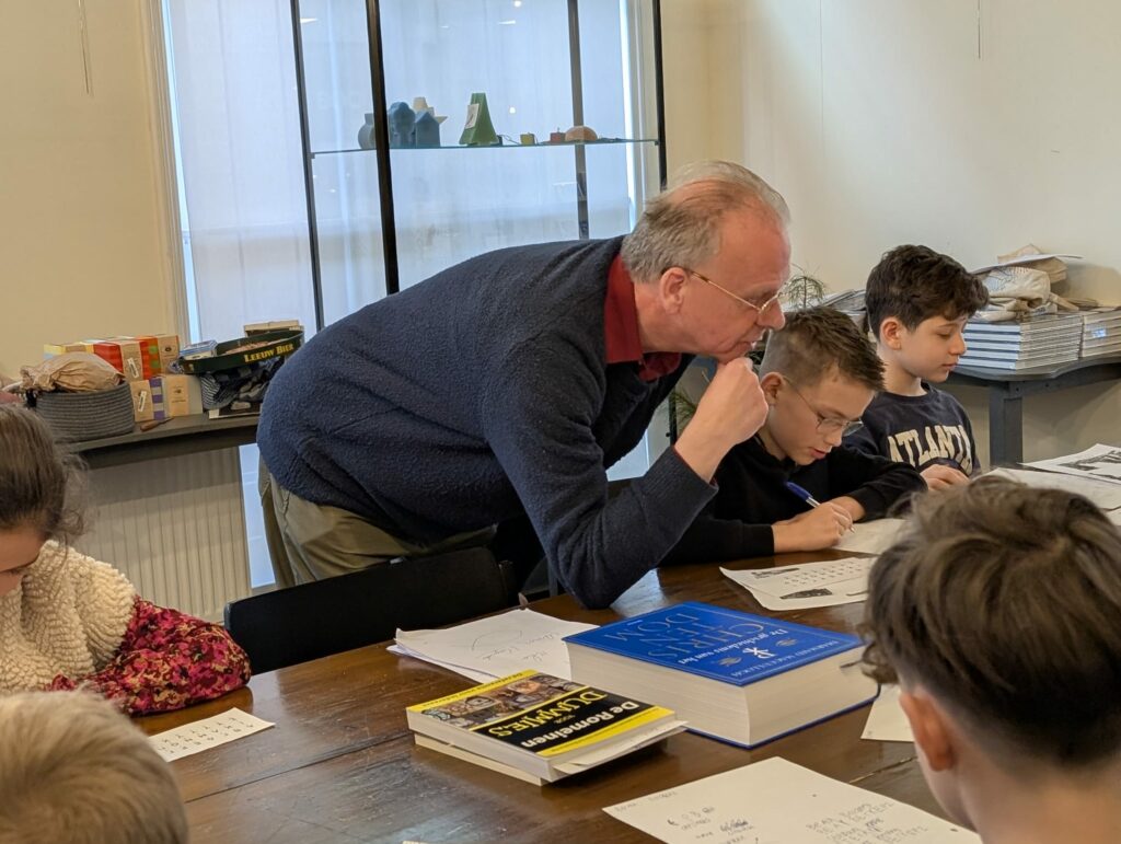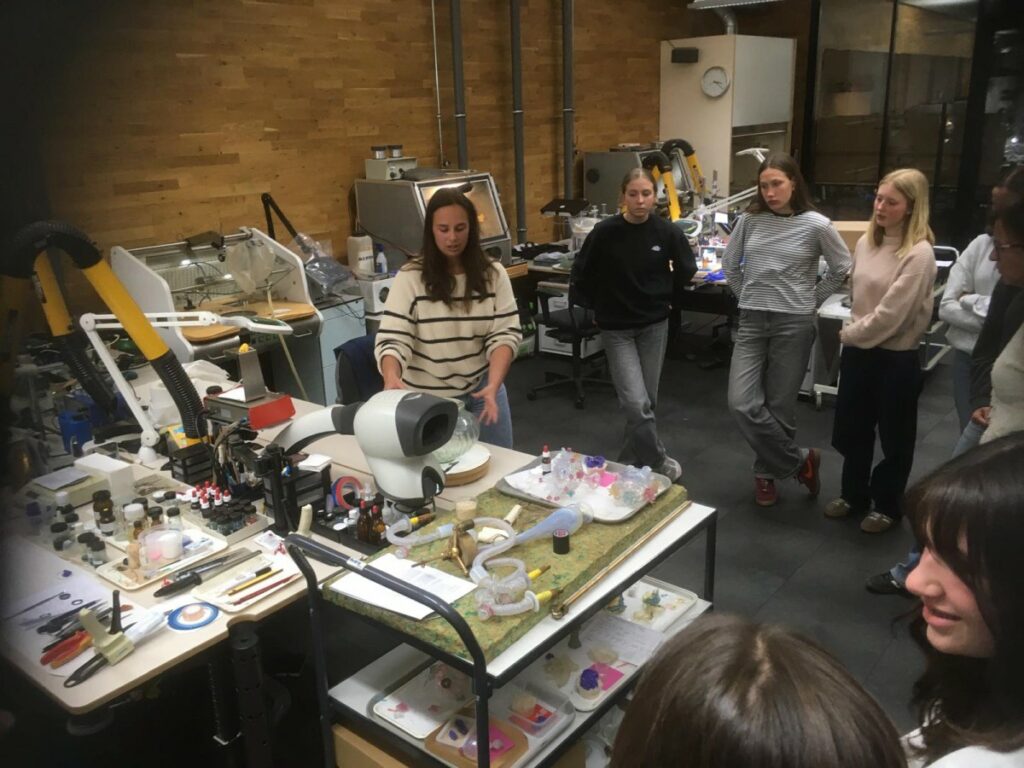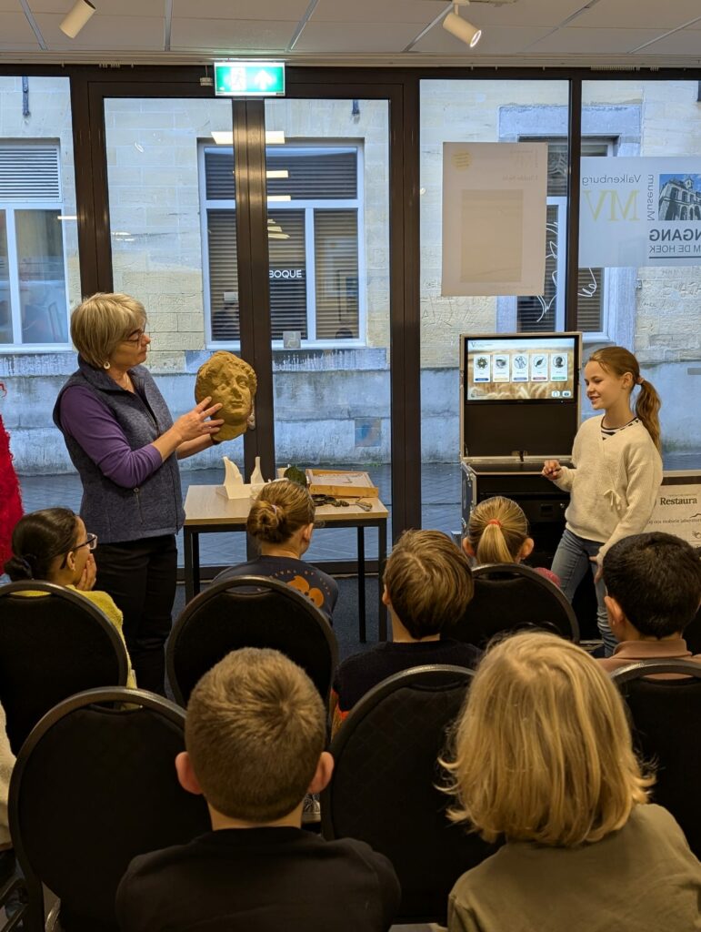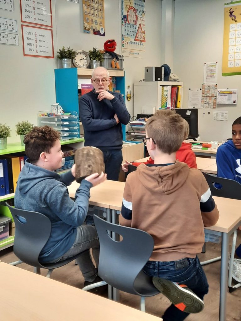 Een select gezelschap van vijf archeologiestudenten en docent Mark Driessen bezocht onlangs Restaura. Vanuit Leiden keken bovendien 80 studenten mee met de livestream. Ze kregen een rondleiding in het atelier en er werd gesproken over het vak. Via Whatsapp konden ook de studenten in Leiden van zich laten horen.