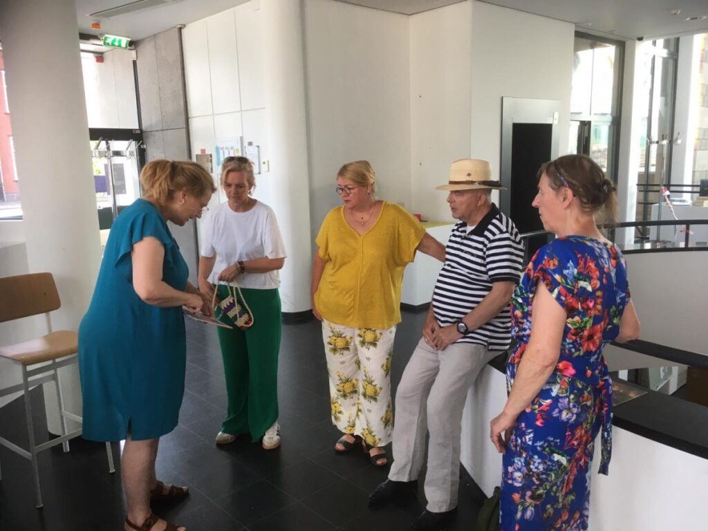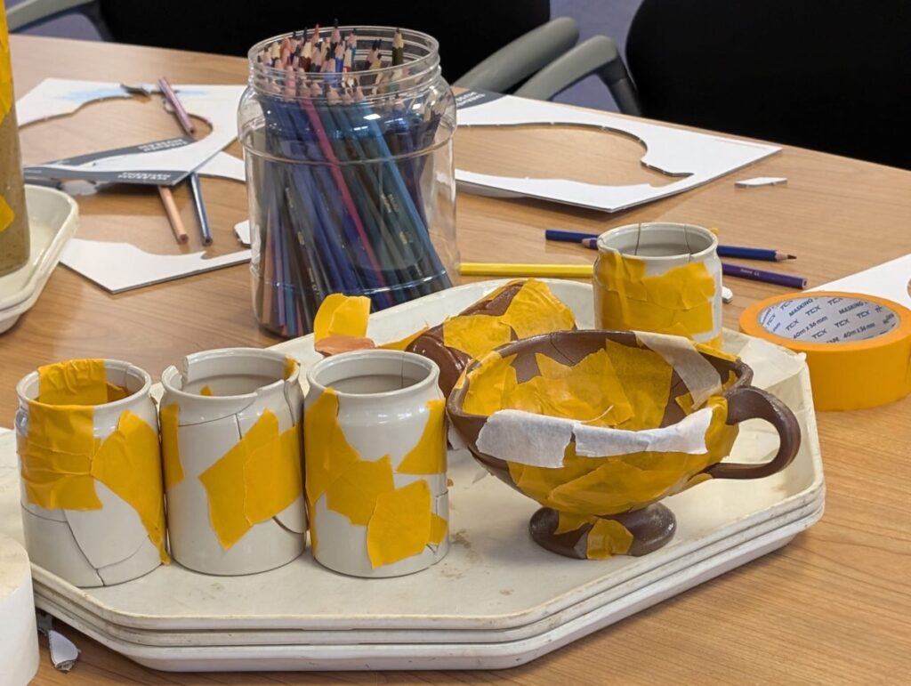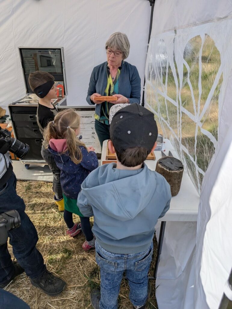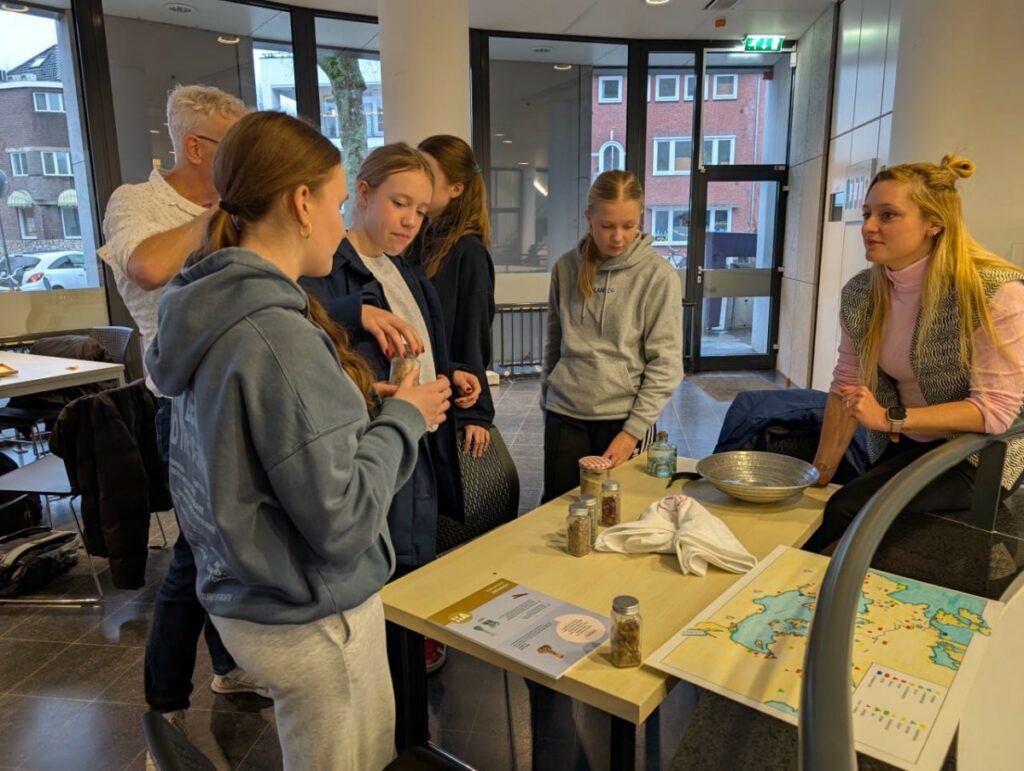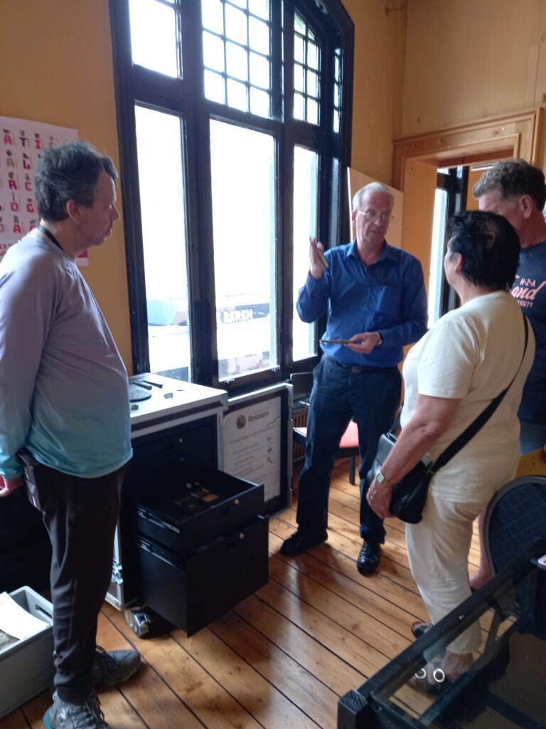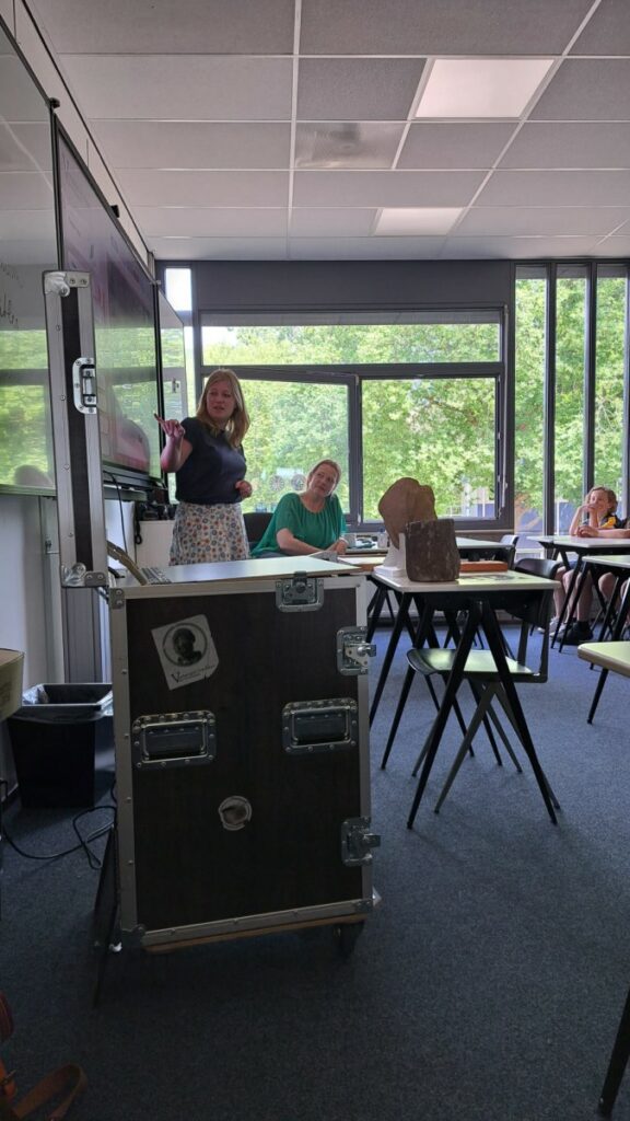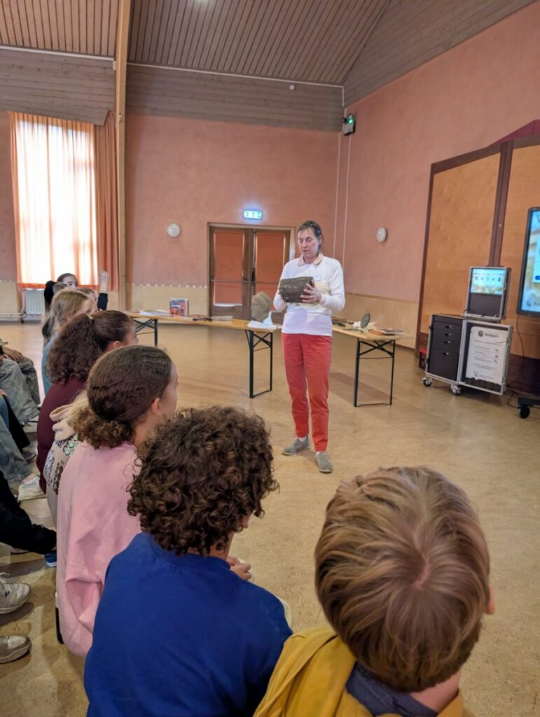 Een select gezelschap van vijf archeologiestudenten en docent Mark Driessen bezocht onlangs Restaura. Vanuit Leiden keken bovendien 80 studenten mee met de livestream. Ze kregen een rondleiding in het atelier en er werd gesproken over het vak. Via Whatsapp konden ook de studenten in Leiden van zich laten horen.